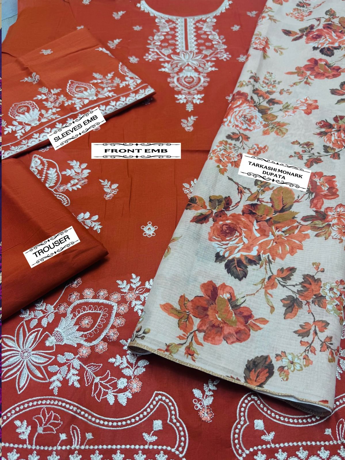 🌻LAWN AIR JET BEST WORLD CLASS QUALITY STUFF 🌻front Full Emb 🌻tarkashi lawn dupata 🌻 Seleeves Emb 🌻dyed trouser