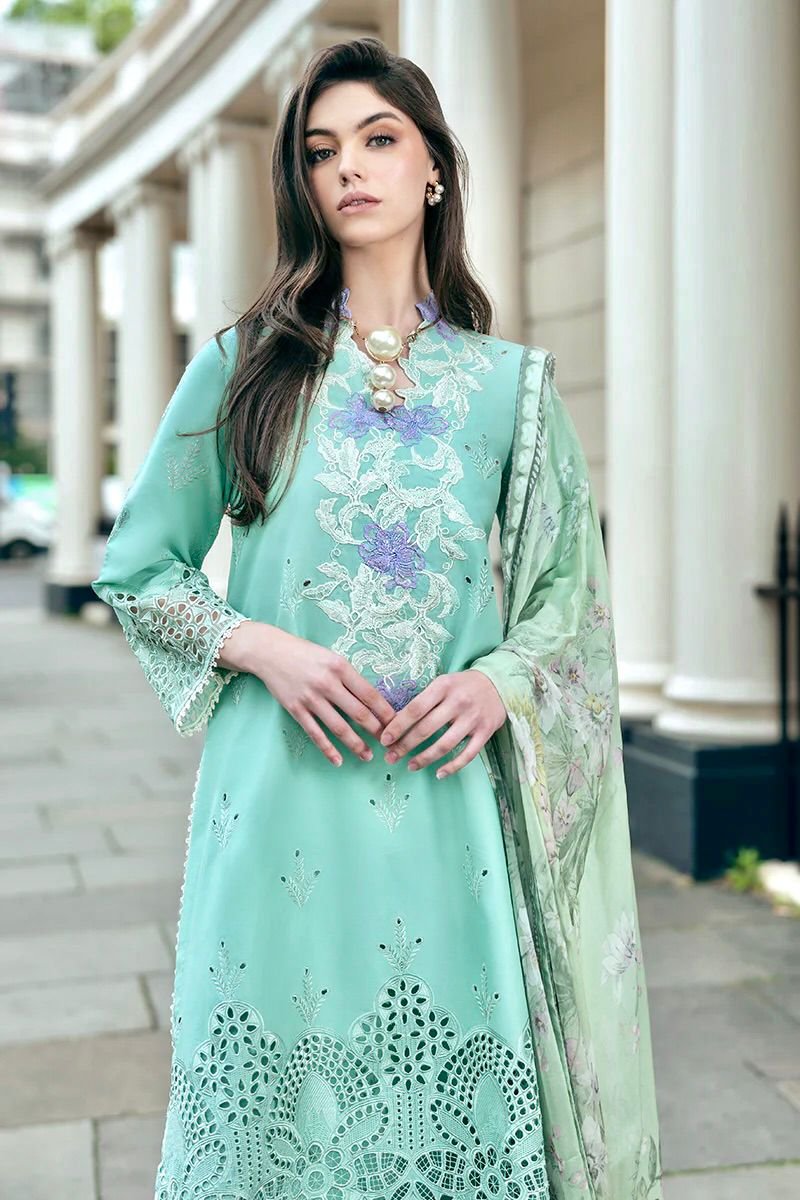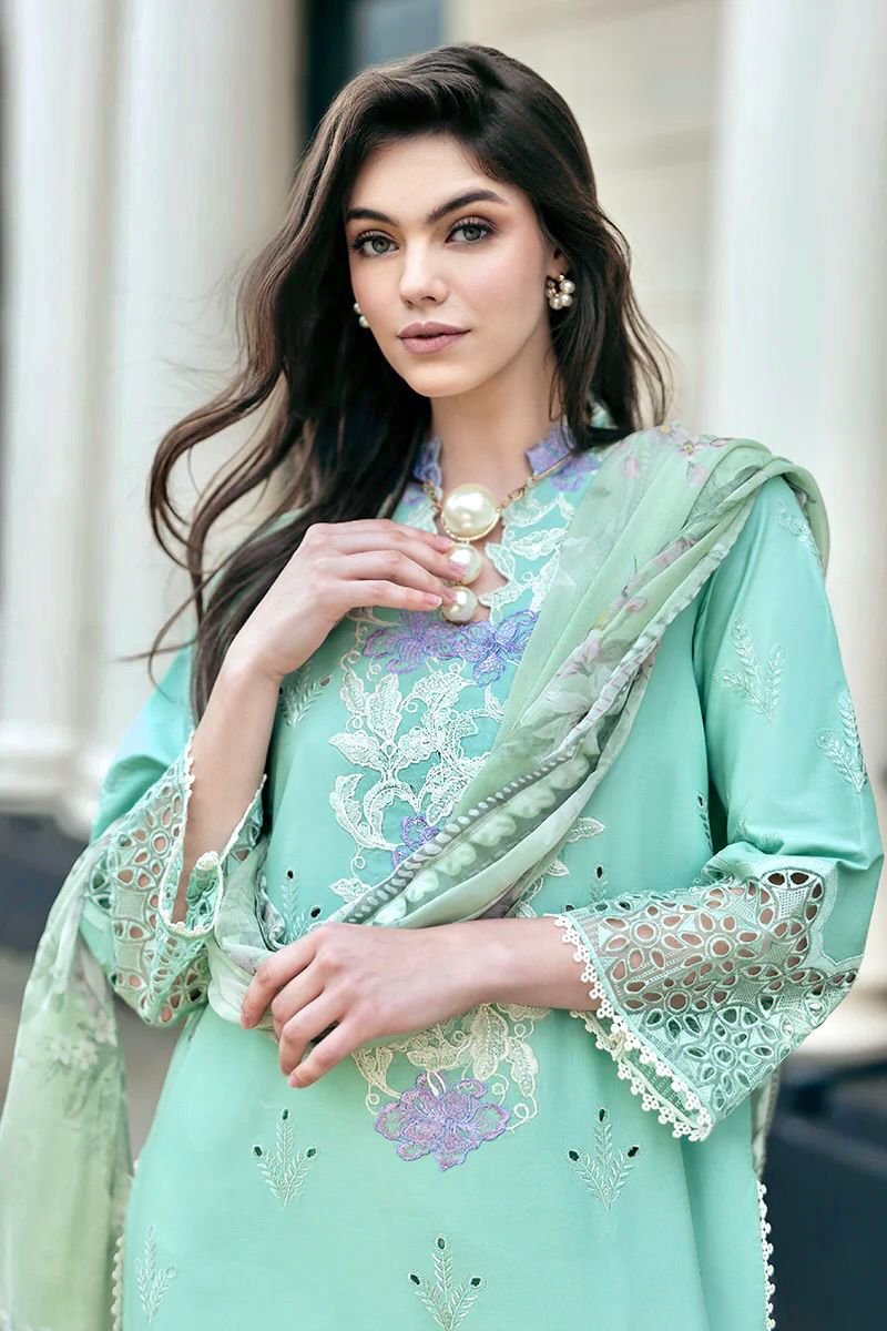 🌻LAWN AIR JET BEST WORLD CLASS QUALITY STUFF 🌻front Full Chickenkari Emb 🌻Tarkashi monark 🌻 Seleeves Emb 🌻Dyed trouser 🌻 Damn boring Emb