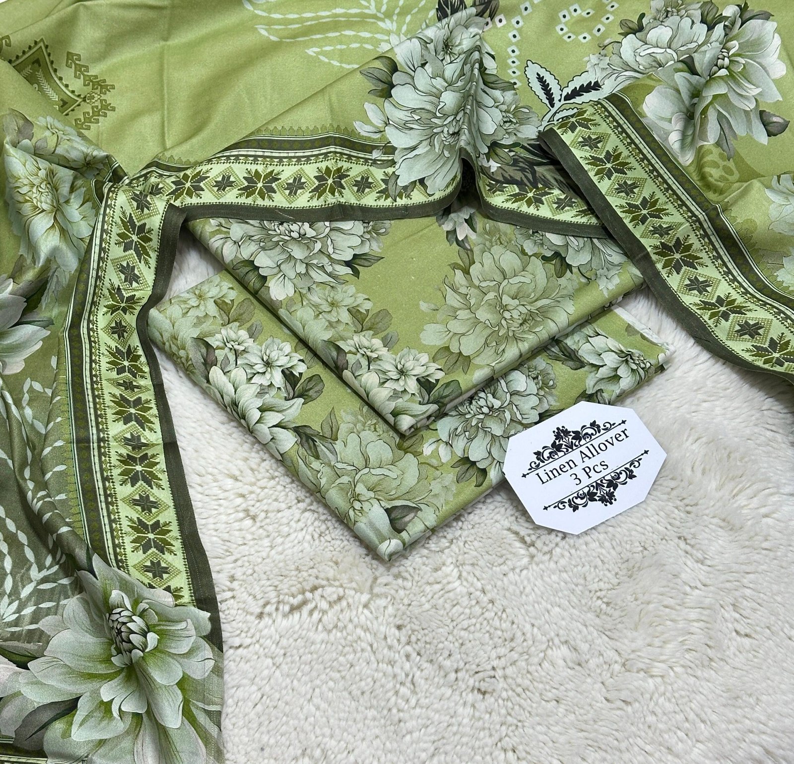 ️Printed Linen allover shirt ❗️Printed Linen dupatta ❗️Printed Linen trouser 10 piece in one set Single suit available